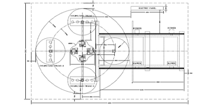 The rocking movement and the oven top movement is with Hydraulics and the rolling movement is with electric motors with the frequency controller to adjust the speed and to start and stop the big moulds softly.