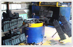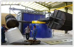Once the heating is over the mould is lifted with the crane and is moved to a separate cooling station. Thus a new cycle can begin in the oven.